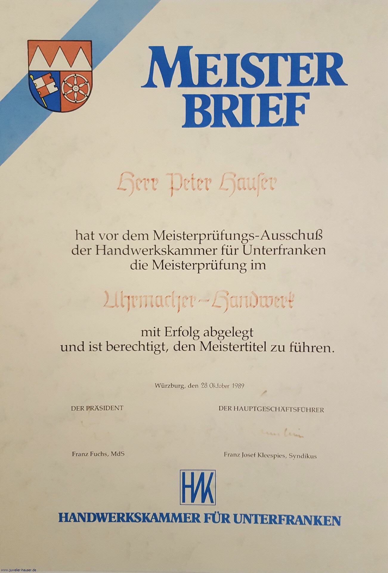 1962 wurde Peter und 1964 Klaus Hauser, Söhne von Eugen Hauser dem II. in Fürstenfeldbruck geboren. Peter Hauser legte 1982 die Gesellenprüfung im Uhrmacherhandwerk in Würzburg, 1986 im Goldschmiedehandwerk in München und 1989 die Meisterprüfung im Uhrmacherhandwerk wieder in Würzburg ab. Seit 1999 sind die Brüder Peter und Klaus Hauser für die Geschicke der Fa. Juwelier Hauser in Olching verantwortlich.