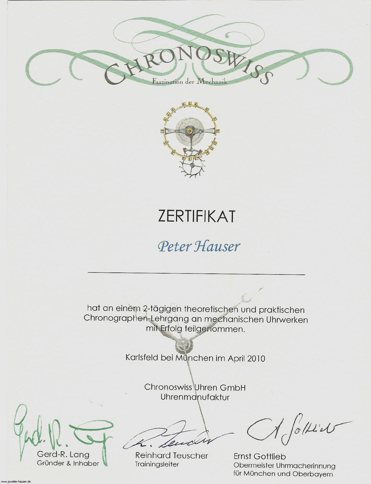 Wir sind zertifizierter Servicepartner von Chronoswiss.