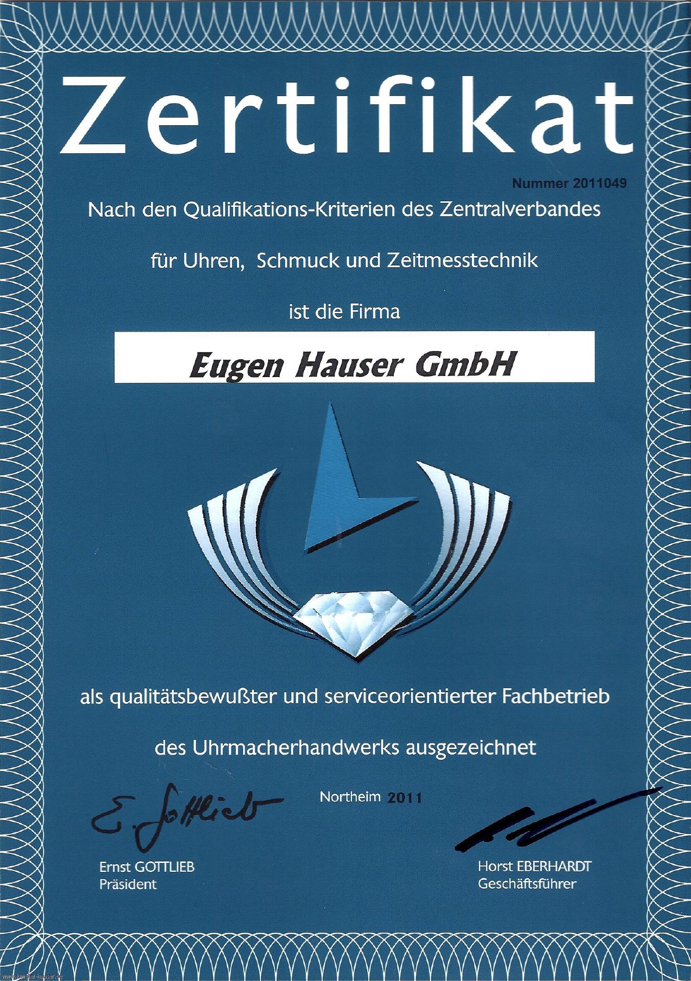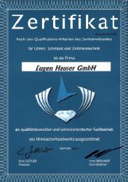 Diese Zerifizierung stellt besondere Ansprüche an die Ausbildung, regelmäßige Weiterbildung, sowie an die Werkstattausstattung. Auf Grund dieser Auszeichnung sind wir zerifiziertes Service Center der Swatch Group Deutschland für die Marken, Tissot, Certina, Rado, Mido, Ballmain, Hamilton, Longines, sowie howertiger Deutcher Marken wie; Marcello C., Junghans, Uhrenaltelier Bruno Söhnle Glashütte/SA, Mühle Glashütte/SA, Nomos Glashütte/SA und viele schweizer Hersteller wie Eterna, Ebel, Maurice Lachroix, Philippe Charriol, und vieler weiterer Uhremmarken.
